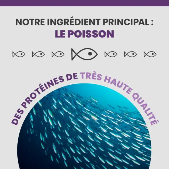 - Ingrédients issus de poissons capturés durablement et certifiés MSC.