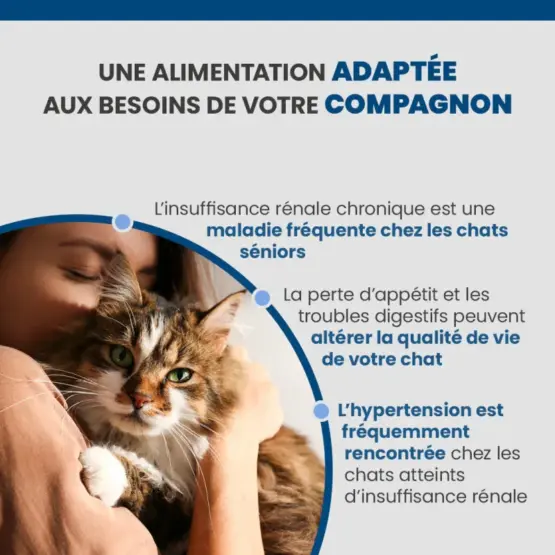Aliment complet et équilibré pour chat souffrant d’une insuffisance rénale, hépatique ou cardiaque.