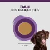 • L’aliment, complet et équilibré, a une teneur légèrement en fibres et une densité énergétique modérée. Cet équilibre favorise le maintien du poids optimal chez les chiens seniors, dont le besoin énergétique peut être réduit.