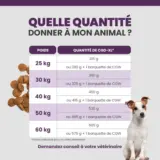 • Permet de stabiliser le poids grâce à une énergie adaptée aux besoins des chiens âgés.
