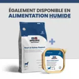 Aliment diététique complet pour le soutien des fonctions cardiaque et rénale et/ou en cas d’insuffisance hépatique chez le chien adulte.