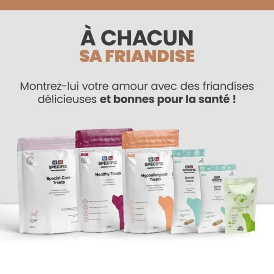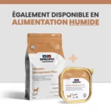 Les terrines SPECIFIC™ COW-HY contiennent des nutriments qui participent au renforcement de la barrière cutanée, protégeant ainsi des allergènes environnementaux. Les symptômes des allergies sont soulagés par la teneur exceptionnellement élevée en Oméga-3 issus du poisson qui participent à réduire l’inflammation dont souffre votre animal.