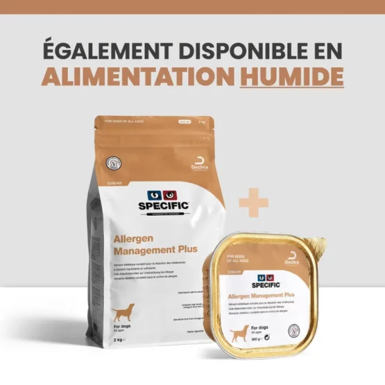 Les terrines SPECIFIC™ COW-HY Allergen Management Plus sont adaptées aux chiens souffrant d’allergies multiples (alimentaires et environnementales (pollen, acariens, puces, …). Elles ont été spécialement formulées par des vétérinaires. Ses ingrédients sélectionnés avec soin réduisent le risque d’allergies alimentaires.