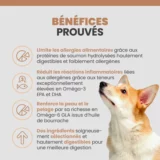 • Limite les allergies alimentaires grâce aux protéines de saumon hydrolysées hautement digestibles et faiblement allergènes.