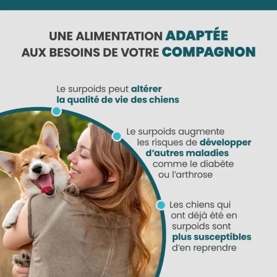 Aliment diététique complet faible en calories et en graisses spécialement formulé pour aider votre chien à perdre du poids.