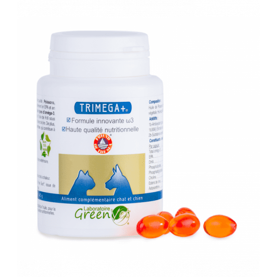 Trimega + de Greenvet, aliment complémentaire à base de 3 huiles de haute qualité :