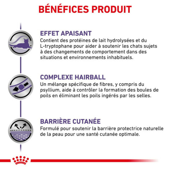 Royal Canin Cat Calm est un aliment recommandé pour aider le chat à gérer des situations difficiles et à réduire les manifestations digestives, cutanées et urinaires liées au stress ou à un changement d’environnement.