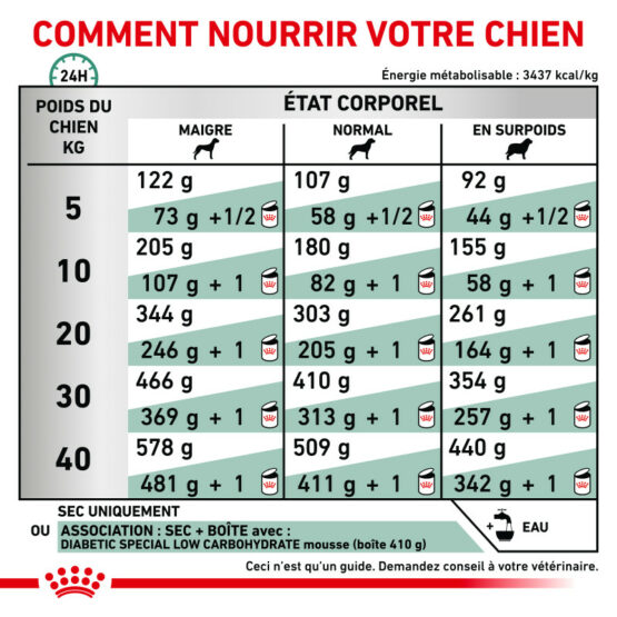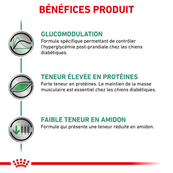Royal Canin Dog Diabetic est un aliment complet pour chiens formulé pour réguler la glycémie (diabète sucré).
