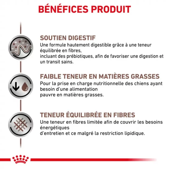 • La restriction de matières grasses est essentielle pour le traitement des chiens souffrant d’hyperlipidémie ou de pancréatite aigüe.