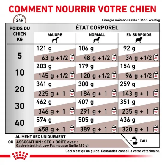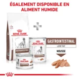 Royal Canin Dog Gastro Intestinal est un aliment complet, équilibré, réduit en matière grasse et faible teneur en fibres destiné à réguler le métabolisme lipidique. Contribue à rééquilibrer l’écosystème du côlon et à augmenter la sécurité digestive.