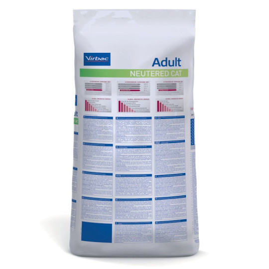 Virbac Adult Neutered Cat est aliment complet adapté au chat adulte stérilisé, prédisposé aux risques de surpoids et d’affections du bas appareil urinaire.