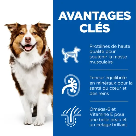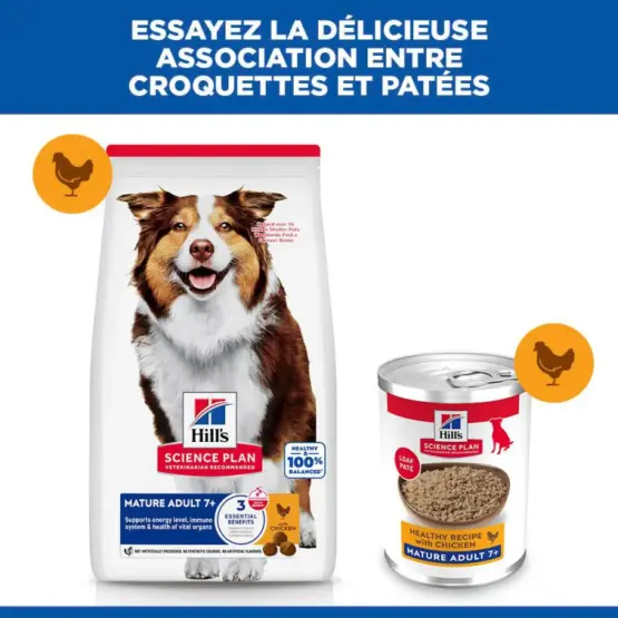 Hill’s Science Plan Canine Mature Adult 7+ au Poulet est spécialement formulé pour maintenir la mobilité et des organes vitaux en bonne santé.