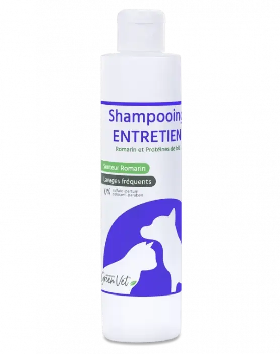 Le Shampooing Entretien est conçu pour des lavages fréquents et pour les animaux à peau fragile.