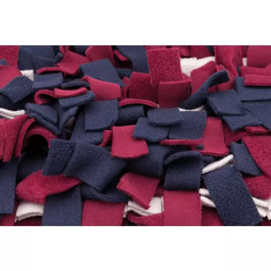 Ce tapis d’activité pour chiens est un jouet ludique et éducatif. Il est spécialement conçu pour que votre chien utilise efficacement son museau et ses pattes. Il pourra renifler ou gratter pour chercher la nourriture, ou les friandises que vous avez cachées dans les franges. Ce tapis stimulera son activité cérébrale et occupera votre chien de façon ludique.