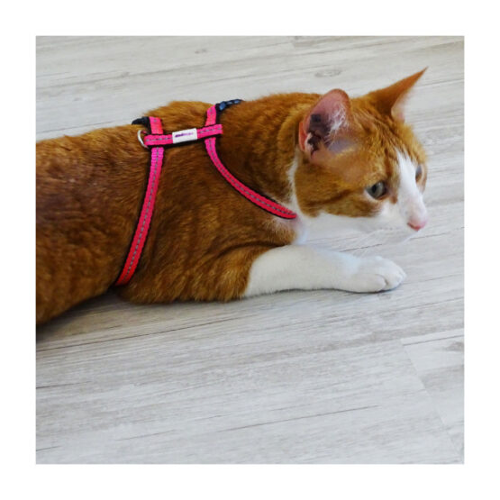Harnais réglable pour chat de couleur vive orange, en H, pour une pose rapide et un grand confort de votre animal.