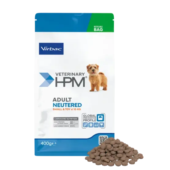 Adult Neutered Dog Small & Toy est un aliment complet pour chien adulte stérilisé ou ayant tendance à l’embonpoint.