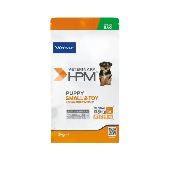 Veterinary HPM Baby Dog Small & Toy est une alimentation complète et équilibrée pour les chiots de petite race. Elle contribue à la croissance harmonieuse sur une courte durée du chiot et lui apporte, en plus de l’énergie importante dont il a besoin, un renforcement digestif et immunitaire.
