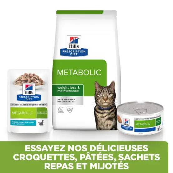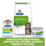 Hill’s Prescription Diet Metabolic Feline est un aliment cliniquement prouvé pour favoriser la perte de poids chez le chat.