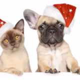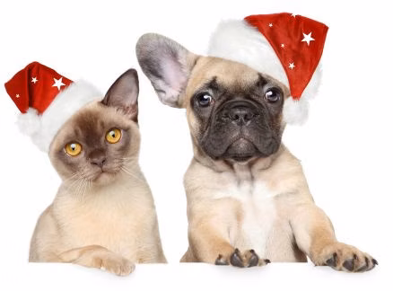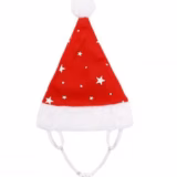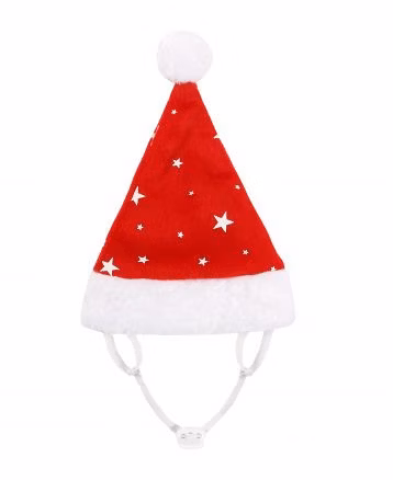 Bonnet de Noël pour chien et chat, imprimé avec des étoiles blanches. Ajustable grâce aux élastiques, votre compagnon pourra faire partie de la fête avec ce bonnet de Noël.