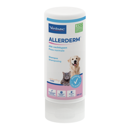 Le shampoing Virbac nettoie en douceur en respectant le pH cutané de l’animal.