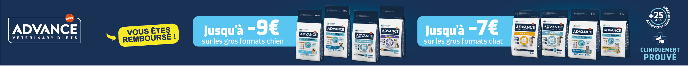 Depuis plus de 25 ans, Advance s'engage à prendre soin des chiens et des chats en leur offrant des Croquettes de qualité, élaborées par des vétérinaires et des nutritionnistes spécialisés. La marque Advance propose une gamme physiologique adaptée pour chiens et chats en les accompagnant tout au long de leur vie grâce à une formule exclusive renforcée avec des probiotiques, prébiotiques et fibres qui contribuent à un microbiote intestinal sain. La gamme médicalisée Advance Veterinary Diets a pour mission d’offrir des solutions de soutien au traitement des principaux problèmes chez les chiens et les chats grâce à ces régimes vétérinaires de qualité, aux résultats prouvés, le tout à un prix abordable.