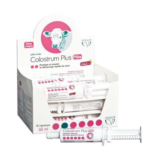Colostrum Plus en pâte permet de renforcer le système immunitaire du veau nouveau-né en apportant tous éléments indispensables à sa croissance : énergie, protéines, macro-éléments, oligo-éléments et vitamines.