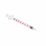 • Corps transparent avec graduation en gras : le marquage permet de voir clairement et de mesurer plus facilement la quantité d’insuline à injecter.