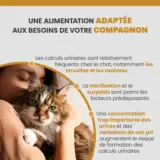 Alimentation équilibrée et complète adaptée au chat adulte souffrant de calculs de struvite ou d’affections des voies urinaires basses.