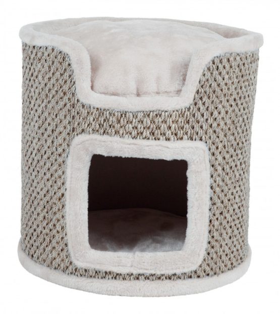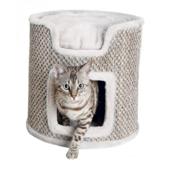 Couverte de peluche et sisal à griffer. Maison habillée de peluche / fibre polaire