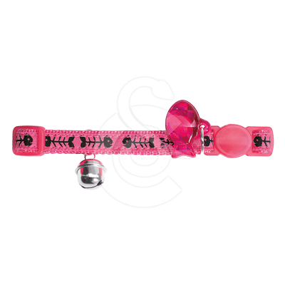 Avec grelot et pendentif réfléchissant en forme de coeur ou de poisson, pour inscrire vos coordonnées.