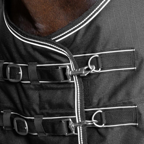 Très confortable pour le cheval avec une encolure haute et un grand rabat de queue elle permet également une protection optimale en cas d’intempéries.