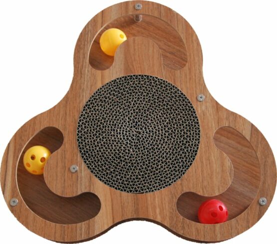 Offrez une véritable aire de jeux ludique et amusante à votre chat ! Entièrement en bois, cette aire de jeux est équipée d’un griffoir ainsi que de rails où circulent des balles colorées, l’idéal pour divertir votre félin durant des heures.