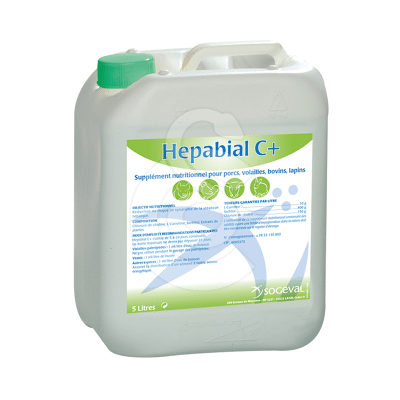 Supplément nutritionnel pour porcs, volailles, bovins, lapins. Hepabial C+ comble le déficit énergétique lié à l’ensemble des dysfonctionnements hépatiques (liés au foie). Il stimule le foie et donc la production d’énergie nécessaire au bon déroulement du métabolisme général.