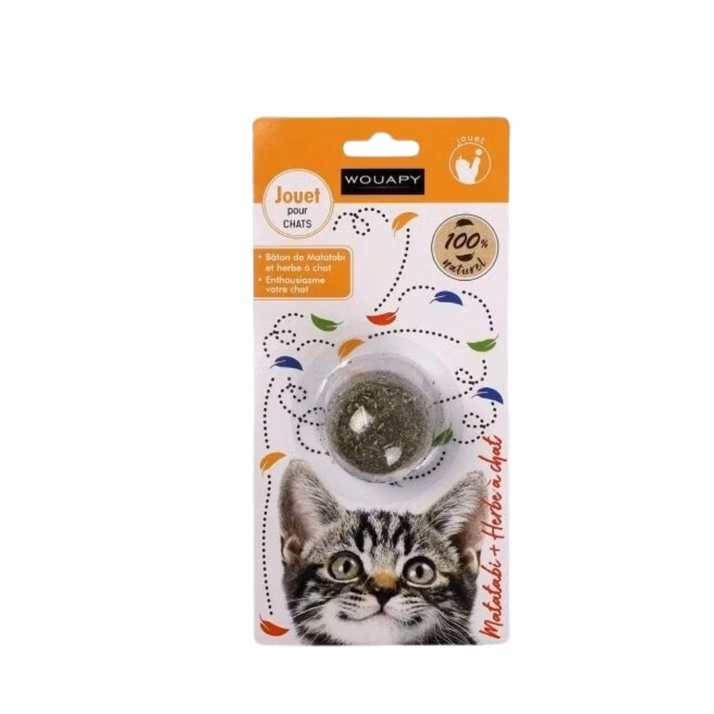 Balle 100 % naturelle composée d’herbe à chat et de matatabi, double attrait pour l’animal !