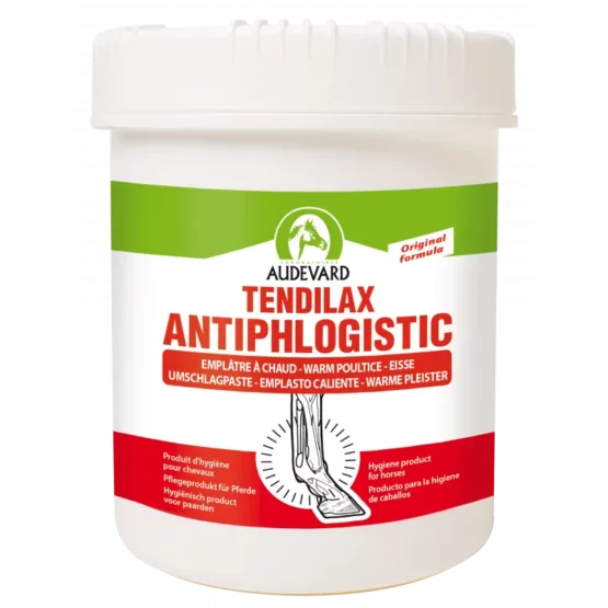 Tendilax Antiphlogistic d’Audevard est une argile pour chevaux à appliquer à chaud, riche en kaolin et huile essentielle d’eucalyptus, destinée à apaiser les membres après l’effort.