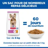- Une alimentation parfaitement équilibrée et facile à digérer, adaptée aux chiens de petites races.