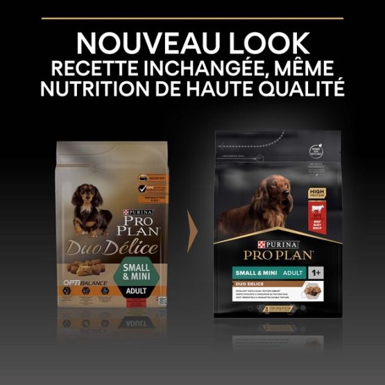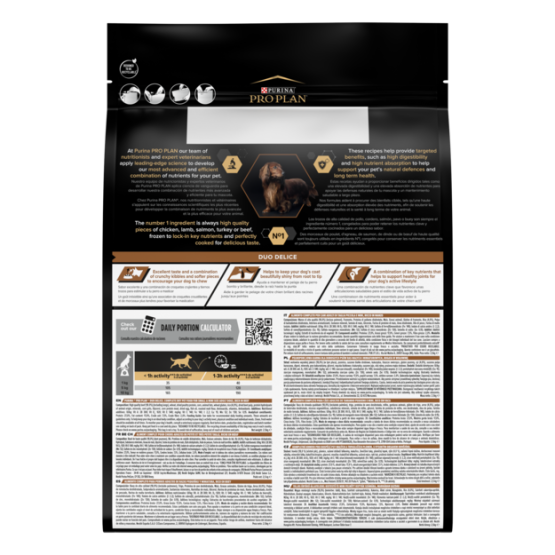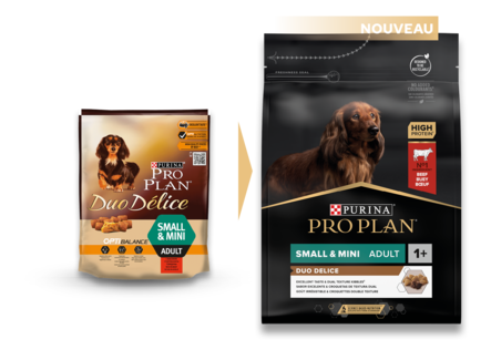 Duo Delice Adult Small Dog Bœuf-Riz offre une combinaison unique de petites croquettes croustillantes et de tendres petits morceaux effilés pour une alimentation complète chez le chien de petite taille.