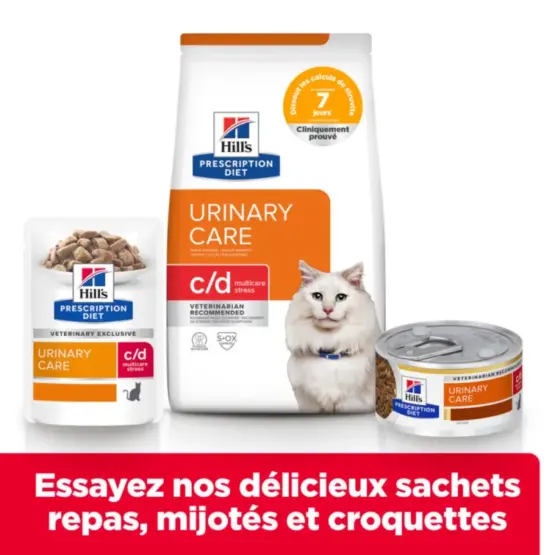 Céréales, viandes et sous-produits animaux (poulet 14 %), extraits de protéines végétales, huiles et graisses, minéraux, lait et sous-produits de lait (hydrolysat de protéines de lait 0,1%), mollusques et crustacés. Substances alcalinisantes de l'urine : Citrate de potassium (2 g/kg).