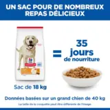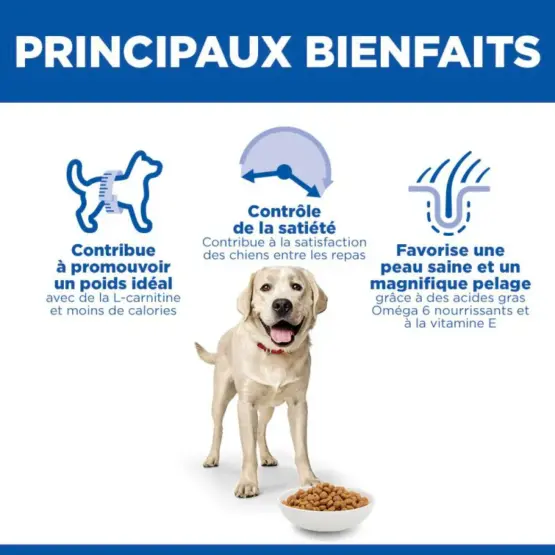 - – 37% de matières grasses et – 18% de calories (comparé à Hill’s Science Plan Adult Large Breed).