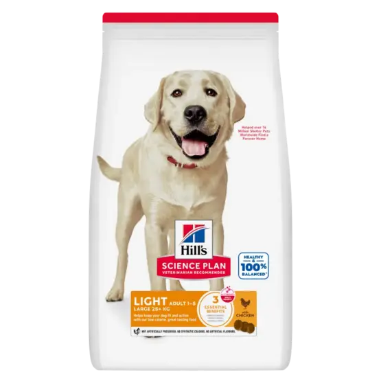 Hill’s Science Plan Canine Adult Light Large Breed with chicken (Light Grande Race au poulet) est spécialement conçu pour aider les chiens de grande race à maintenir un poids idéal et des articulations en bonne santé.