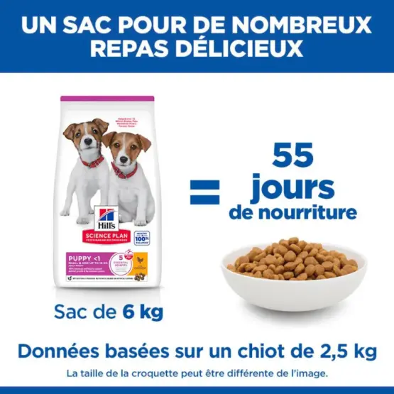 Hill’s Science Plan Puppy Small et Mini au poulet est formulé pour renforcer le système immunitaire et la mobilité.