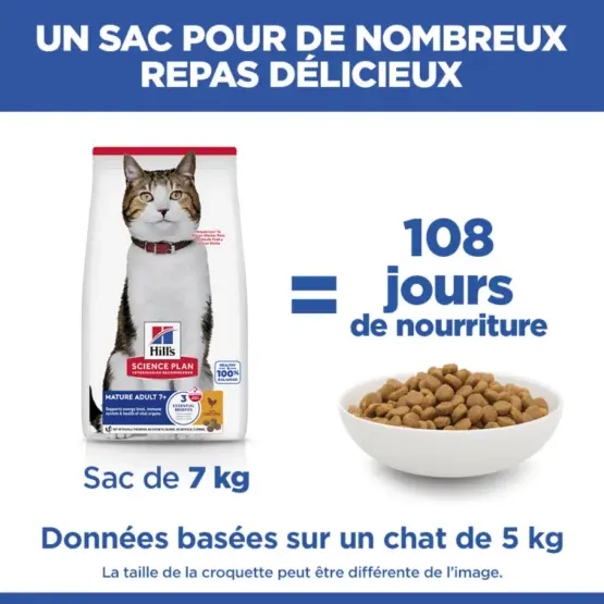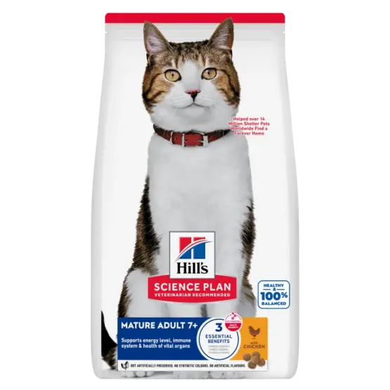Hill’s Science Plan Feline Mature Adult 7+ Active Longevity Chicken (Vitalité & Longévité au Poulet) aide à préserver le bon fonctionnement des reins et des organes vitaux.