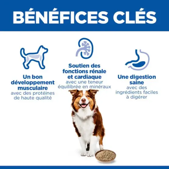 Protéines de haute qualité pour aider le chien âgé à maintenir la masse musculaire.