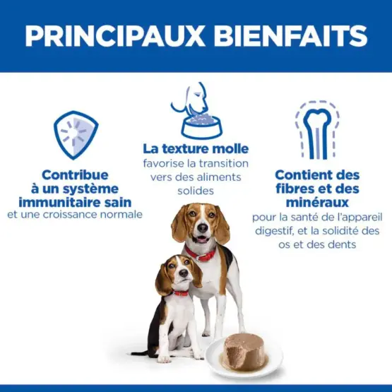 Cette pâtée adaptée à la chienne et au chiot soutient le système immunitaire et favorise une bonne croissance.
