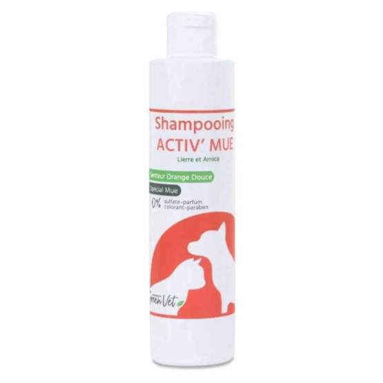 Activ’mue est un shampooing Greenvet conçu pour améliorer la repousse du pelage de votre animal lors de la période de mue.