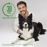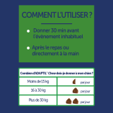 Aliment complémentaire destiné à calmer rapidement les chiens lorsqu’ils font face à des situations stressantes.