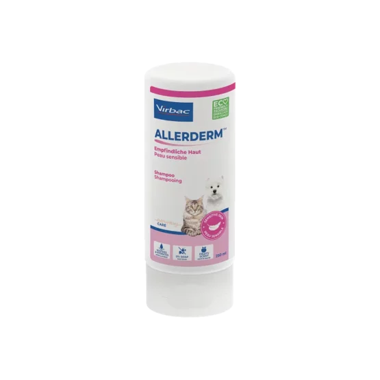 • ALLERDERM est un shampooing doux conçu pour l’hygiène quotidienne des chiens, des chats, des chiots et des chatons ayant une peau sensible et sèche.
