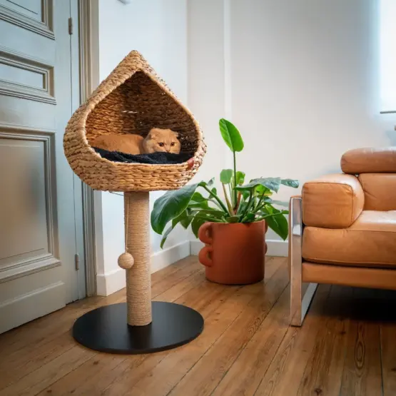 Conseil bien-être : L’arbre à chat goutte sera particulièrement bien situé dans l’angle d’une pièce de vie : votre chat pourra y faire ses griffes, mais aussi passer du temps près de vous, en toute sécurité.