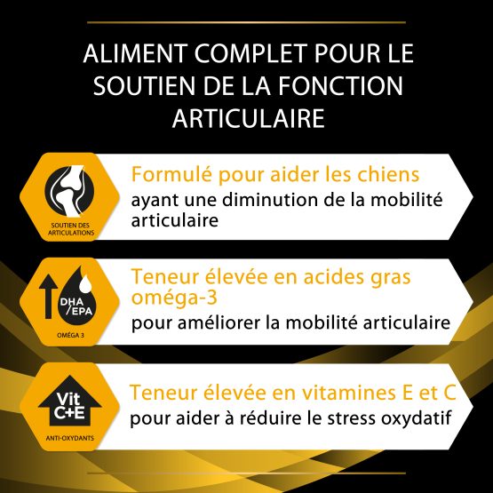 • Soutien des articulations : Formulé pour aider les chiens ayant un déficit de la mobilité articulaire