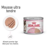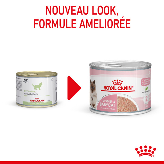La mousse ultra tendre ROYAL CANIN® Mother & Babycat est spécialement adaptée pour répondre aux besoins énergétiques élevés de votre chatte en fin de gestation et pendant la lactation. Sa texture ultra tendre et appétente est idéale pour les chatons jusqu’à l’âge de 4 mois.